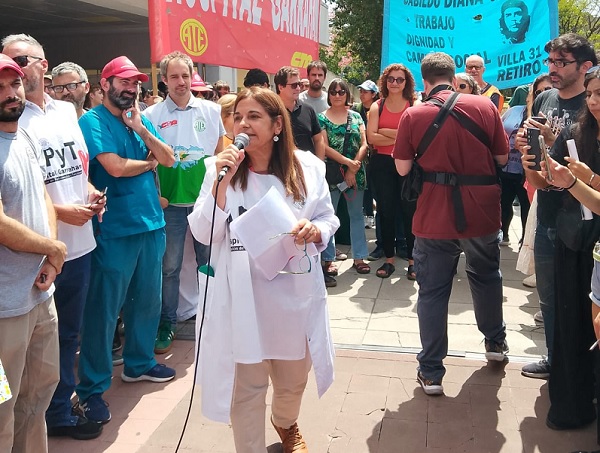 27/02/2026 | “Un abrazo para celebrar el fallo de la justicia laboral que viene a poner un poco de aire otra vez a los trabajadores y trabajadoras del hospital” - Norma Lezama Secretaria General Asociados de Profesionales y Técnicos del Garrahan, en el abrazo simbólico que se realizó el día jueves.