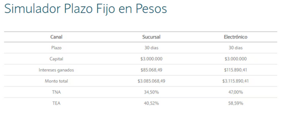 Cuánto rinde un plazo fijo de $3.000.000 a 30 días