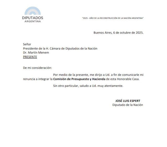 Con su renuncia, La Libertad Avanza deberá resolver si Espert continuará como miembro de la comisión o si será reemplazado. Dado que era la única comisión en la que participaba, el diputado quedaría fuera de toda instancia de debate en el trabajo parlamentario.